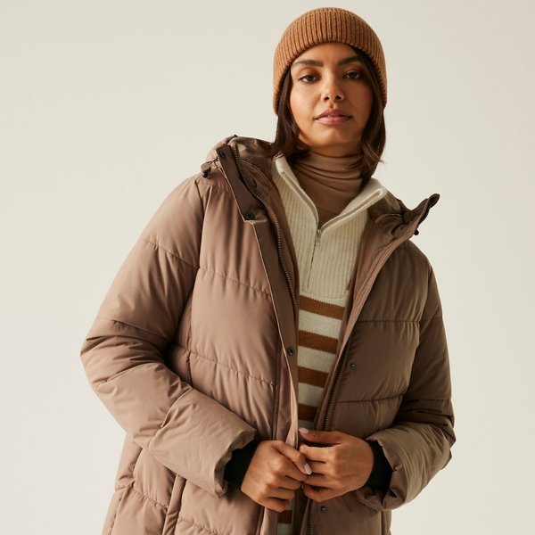 Płaszcz puchowy Eloria Regatta to doskonałe rozwiązanie dla kobiet poszukujących połączenia stylu, komfortu i funkcjonalności na chłodniejsze dni.