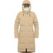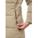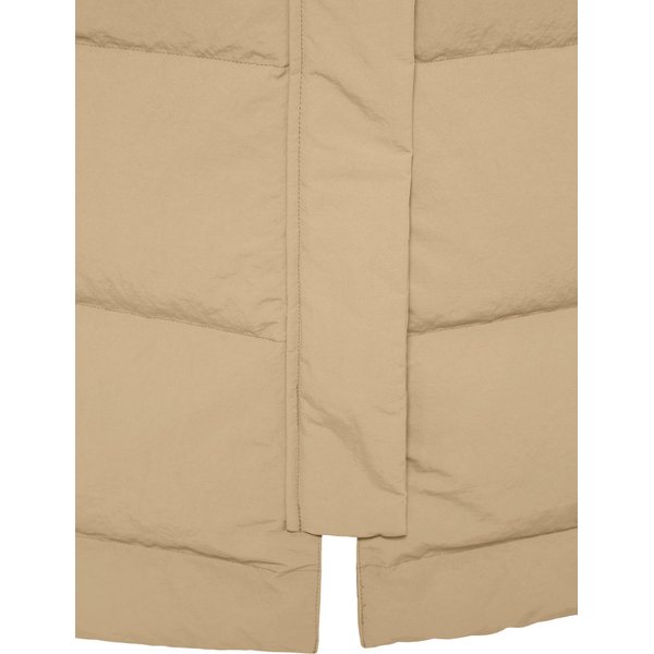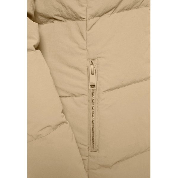 Wypełnienie płaszcza to gruby, przyjemny puch o sprężystości 550 cuin, posiadający certyfikat RDS, co gwarantuje jego pochodzenie z etycznych źródeł. Puch jest lekki, a jednocześnie doskonale izoluje przed zimnem, dzięki czemu płaszcz jest nie tylko ciepły, ale również niezbyt ciężki i nie obciąża sylwetki. Materiał wierzchni płaszcza wykonany jest z recyklingowanego materiału z technologią Texashield Pro, która skutecznie chroni przed wiatrem i lekkimi opadami. Jest to wyjątkowo ważne, gdyż zapewnia dodatkową ochronę przed niekorzystnymi warunkami atmosferycznymi, a jednocześnie wpisuje się w ideę zrównoważonego rozwoju.