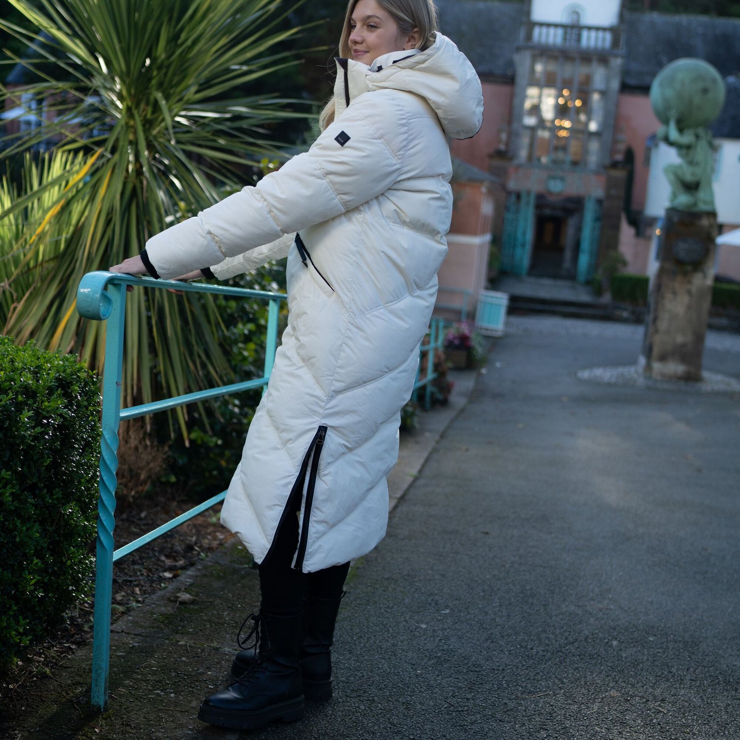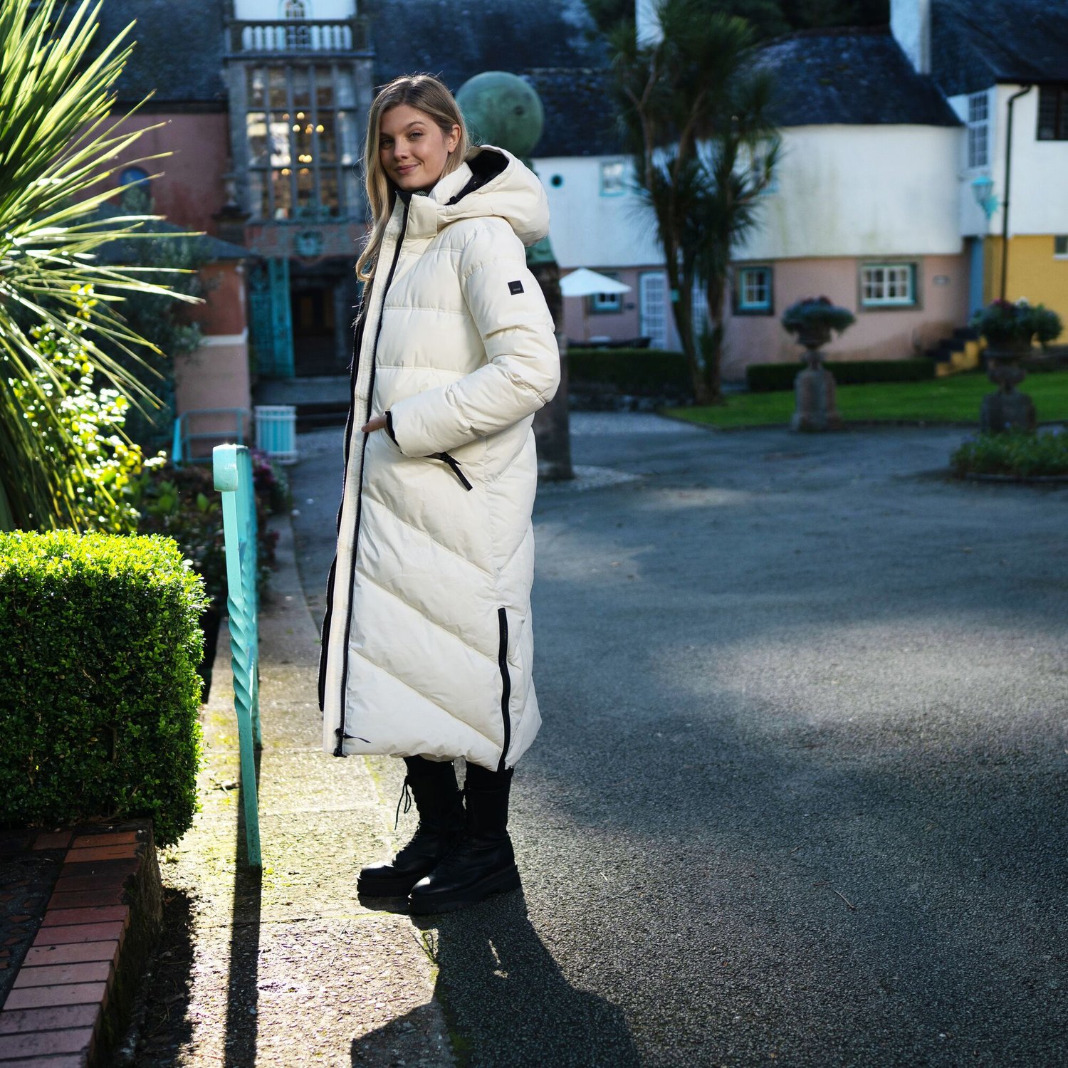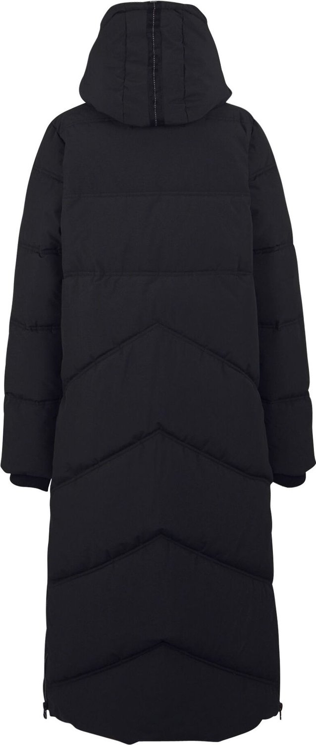 Jednym z głównych atutów tego płaszcza jest jego zdolność do zapewnienia ciepła bez zbędnego obciążania. Dzięki wypełnieniu z syntetycznego puchu, stworzonym z materiałów pochodzących z recyklingu, płaszcz oferuje doskonałą izolację termiczną. Jest to nie tylko korzyść dla użytkowniczek, które mogą cieszyć się ciepłem i komfortem, ale także dla środowiska, ponieważ zastosowanie recyklingu przyczynia się do ochrony naszej planety. Hydrofobowe wykończenie płaszcza skutecznie chroni przed wilgocią i deszczem, co jest szczególnie istotne w zimne i mokre dni. Dodatkową warstwę ochrony zapewnia odpinany kaptur z systemem regulacji, który można dostosować do własnych potrzeb. To praktyczne rozwiązanie umożliwia utrzymanie suchej głowy nawet podczas nagłych opadów deszczu czy śniegu.