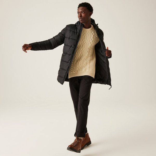 Płaszcz puchowy męski Regatta Lakiver to idealny wybór dla mężczyzn ceniących komfort i styl podczas zimowych aktywności na świeżym powietrzu. Dzięki wodoodpornej tkaninie mikropopelinowej, płaszcz zapewnia doskonałą ochronę przed deszczem i śniegiem. Średnia izolacja chroni przed chłodem, gwarantując ciepło nawet w najtrudniejszych warunkach pogodowych. Praktyczne detale, takie jak wewnętrzna kieszeń zapinana na suwak oraz regulowany kaptur, zwiększają funkcjonalność. Elastyczne mankiety i długość do połowy uda zapewniają wygodę i swobodę ruchów. Pikowany wzór i naszywka z logo dodają modnego wyglądu, idealnie łącząc styl z funkcjonalnością.