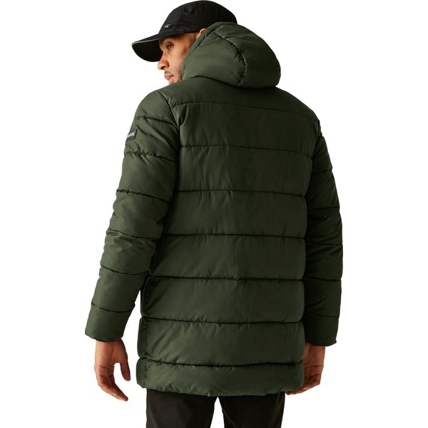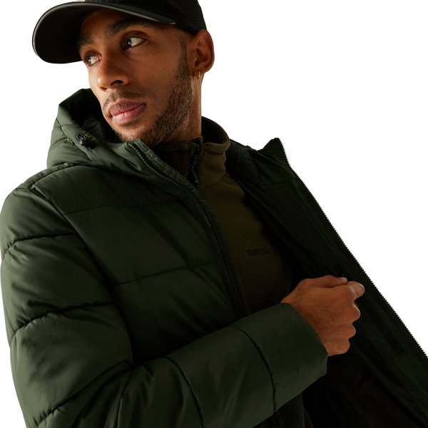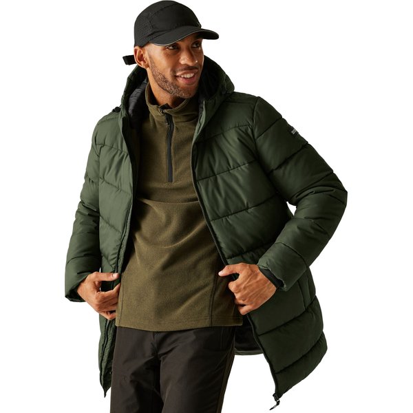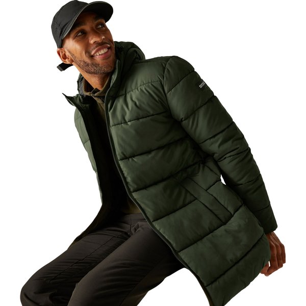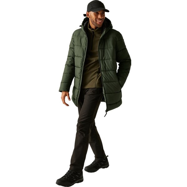 Płaszcz puchowy męski Regatta Lakiver to idealny wybór dla mężczyzn ceniących komfort i styl podczas zimowych aktywności na świeżym powietrzu. Dzięki wodoodpornej tkaninie, płaszcz zapewnia doskonałą ochronę przed deszczem i śniegiem. Średnia izolacja chroni przed chłodem, gwarantując ciepło nawet w najtrudniejszych warunkach pogodowych. Praktyczne detale, takie jak wewnętrzna kieszeń zapinana na suwak oraz regulowany kaptur, zwiększają funkcjonalność. Elastyczne mankiety i długość do połowy uda zapewniają wygodę i swobodę ruchów. Pikowany wzór i naszywka z logo dodają modnego wyglądu, idealnie łącząc styl z funkcjonalnością.