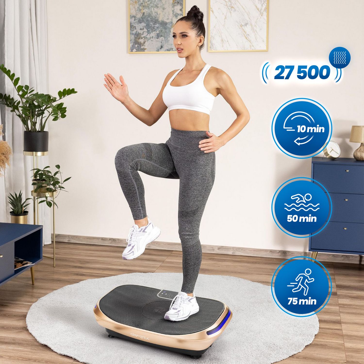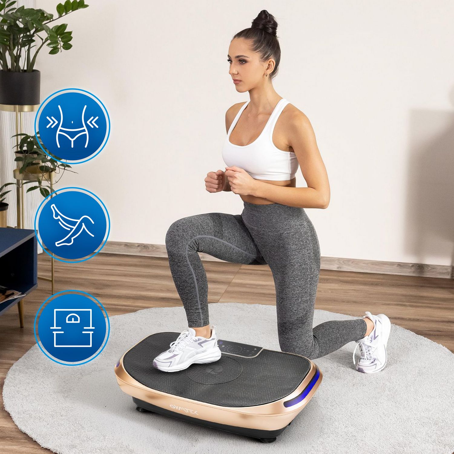 - Redukcja cellulitu i poprawa jędrności skóry: Regularne korzystanie z platformy stymuluje układ limfatyczny, co pomaga w redukcji cellulitu i ujędrnia skórę.