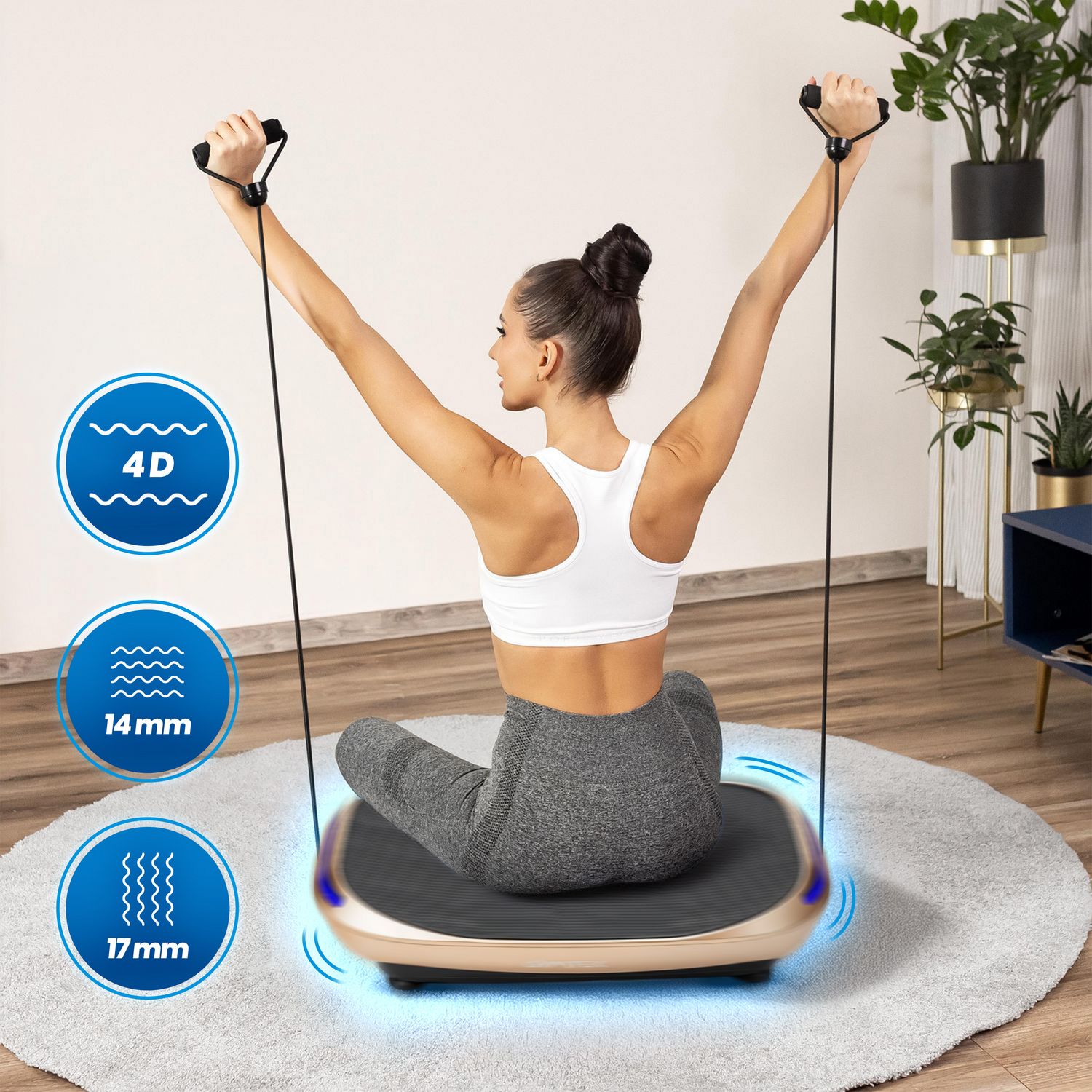 - Większa wszechstronność treningu: Dzięki technologii 4D możesz dopasować intensywność i rodzaj wibracji do swoich potrzeb – od relaksującego masażu po intensywny trening wzmacniający.