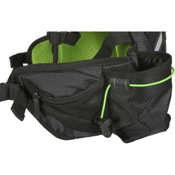 Miejsce na dwa bidony i ewentualnie bukłak z wodą, odpowiednia kieszeń. Dobrze dopasowuje się do ciała