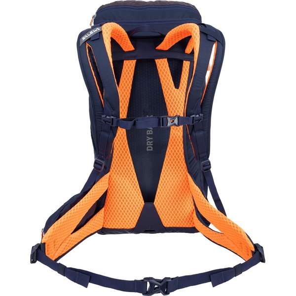 Innowacyjny system nośny Air Fit 2.0 ma za zadanie zapewnić Twoim plecom suchość podczas turystycznych aktywności. System ten ma o 25% mniejszy kontakt powierzchniowy niż poprzednie konstrukcje plecaków Salewa, co ogranicza kontakt z ciałem bez uszczerbku dla kontroli obciążenia. Wbudowany system wentylacyjny wykorzystuje oddychające materiały, co zapewnia lepszy przepływ powietrza w kierunku pleców. Takie rozwiązanie znacznie obniża temperaturę pomiędzy ciałem a plecakiem, średnio o 1,5°C po 15 minutach wysiłku.