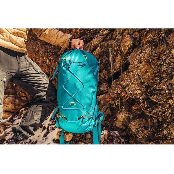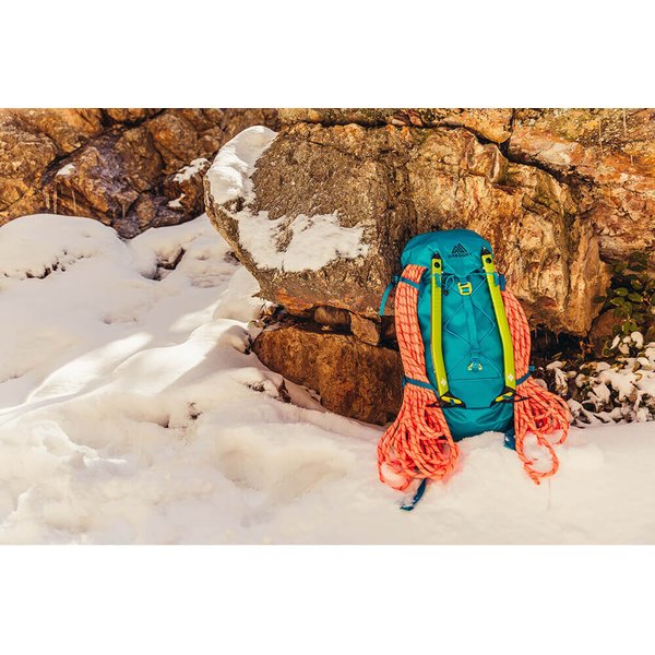 Plecak Alpinisto od marki Gregory został wyposażony w wiele przydatnych elementów. Posiada on m.in.: specjalny system, który umożliwia podpięcie elementów przeznaczonych do pracy na lodzie, odblaskowe pętle do mocowania kasku czy też wewnętrzny rękaw hydracyjny.