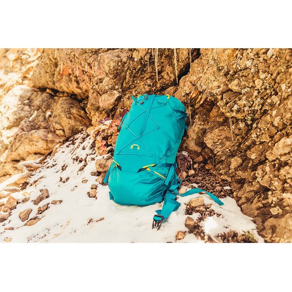 Plecak Alpinisto marki Gregory posiada również odpinane elementy. Możesz go zatem przekształcić w ultralekki plecak szczytowy poprzez odpięcie wyjmowanej kieszeni górnej, pasa biodrowego i stelaża.
