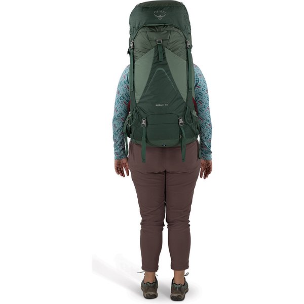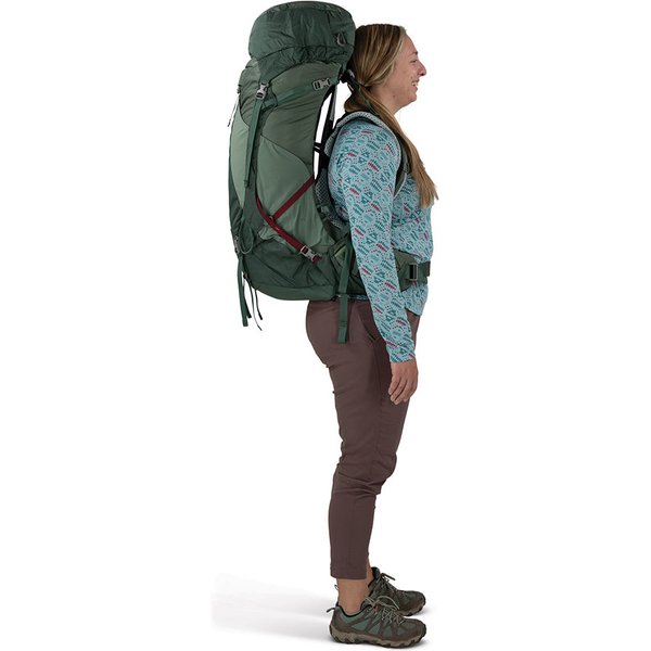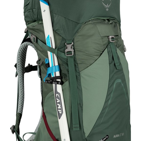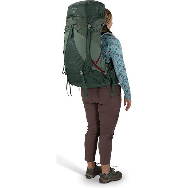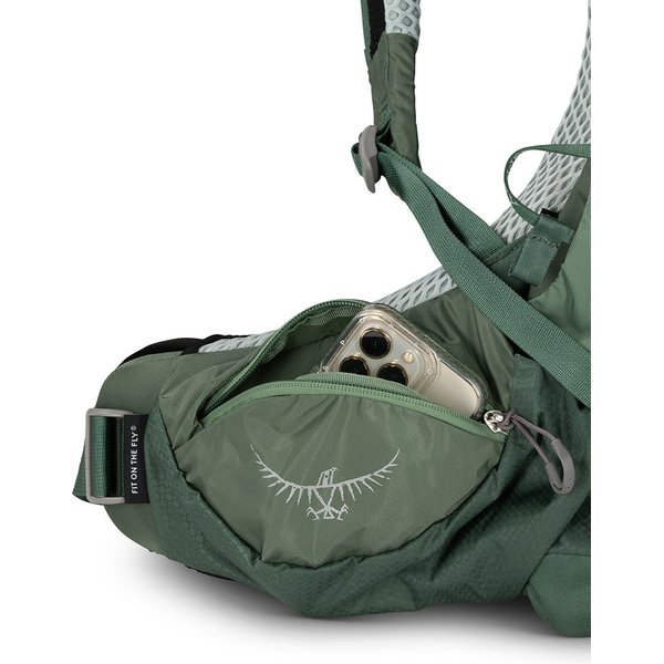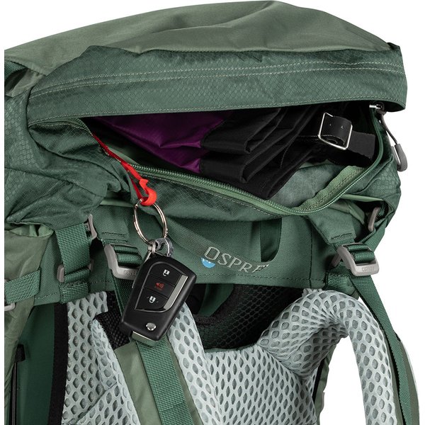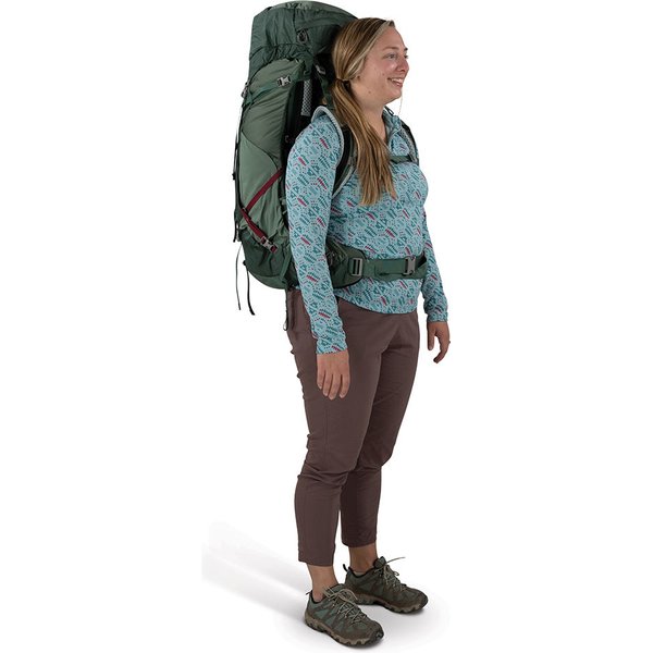Regulowane szelki oraz pas biodrowy z kieszeniami pozwalają na precyzyjne dopasowanie plecaka do sylwetki, co jest kluczowe dla zapewnienia komfortu podczas długotrwałego noszenia. Pas piersiowy wyposażony w gwizdek dodatkowo zwiększa bezpieczeństwo w terenie. Aura AG LT 65L Osprey charakteryzuje się także wysoką funkcjonalnością dzięki licznym paskom kompresyjnym, które umożliwiają regulację objętości plecaka i stabilizację jego zawartości. Górna klapa z kieszenią stanowi dodatkową przestrzeń na drobne przedmioty, a przednia kieszeń z zamkiem pozwala na bezpieczne przechowywanie cennych rzeczy. Uchwyt na kijki trekkingowe oraz system mocowania sprzętu na zewnątrz sprawiają, że plecak jest wszechstronny i dostosowany do różnych potrzeb podczas podróży. Solidna konstrukcja plecaka została wzmocniona w kluczowych miejscach, takich jak podstawa, co zapewnia trwałość i odporność na uszkodzenia. Wewnętrzny rękaw na system nawadniający z tylnym portem wyjściowym umożliwia wygodne korzystanie z bukłaka na wodę, co jest szczególnie przydatne podczas długich wędrówek.