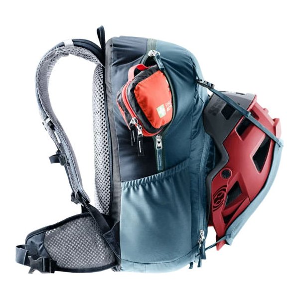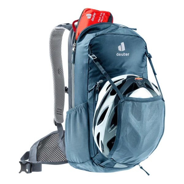 Plecak Bike I 20L Deuter jest kompatybilny z 3-litrowym systemem hydracyjnym. Dzięki temu, z łatwością nawodnisz swój organizm podczas długich wycieczek. Mocowanie na kask to kolejna praktyczna funkcja plecaka. Nie musisz już martwić się o przechowywanie swojego kasku - teraz możesz go łatwo przypiąć do plecaka.