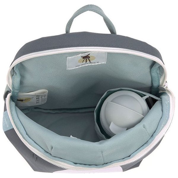 Główna komora jest wystarczająca duża i w jej wnętrzu znajduje się wewnętrzna kieszeń - skrojona na butelkę. Plecaczek jest zapinany na suwak, dlatego zawartość zawsze będzie bezpieczna, a także ułatwia dostanie się do niej. Materiał jest odporny na wilgoć oraz łatwo utrzymać go w czystości. Dodatkiem, który na pewno będzie przydatny jest wewnętrzna plakietka z wizytówką, na której można zapisać dane dziecka oraz telefon kontaktowy do rodzica - w przypadku zagubienia plecaka, znalazca będzie wiedział z kim się kontaktować.