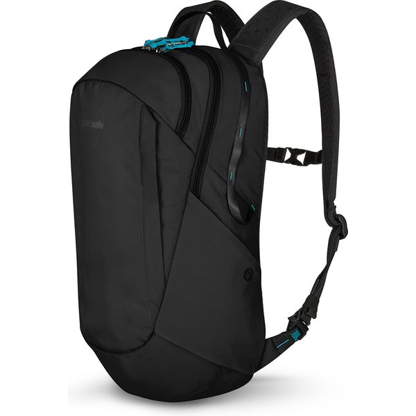 Plecak Eco 25L Pacsafe to idealne rozwiązanie dla podróżników ceniących bezpieczeństwo i ekologię. Wykonany z recyklingowanego poliestru, łączy trwałość z dbałością o środowisko. Technologia RFID zapewnia ochronę danych osobowych, a wodoodporny materiał chroni zawartość przed wilgocią. Wentylowane i regulowane szelki gwarantują komfort nawet podczas długiego użytkowania, a pas piersiowy i biodrowy zwiększa stabilność. Wnętrze plecaka zorganizowane jest tak, aby wszystko miało swoje miejsce: przestronna kieszeń na laptopa, system hydracyjny i liczne kieszenie organizacyjne. Dodatkowo, plecak łatwo przymocować do walizki, co ułatwia podróżowanie.