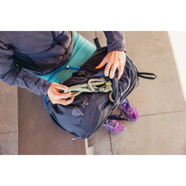 - regulowana pętla mocująca i górny uchwyt na kije trekkingowe lub czekan