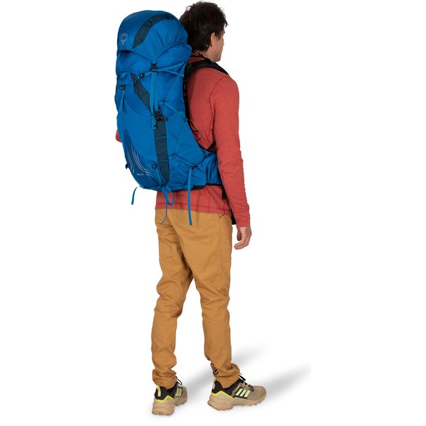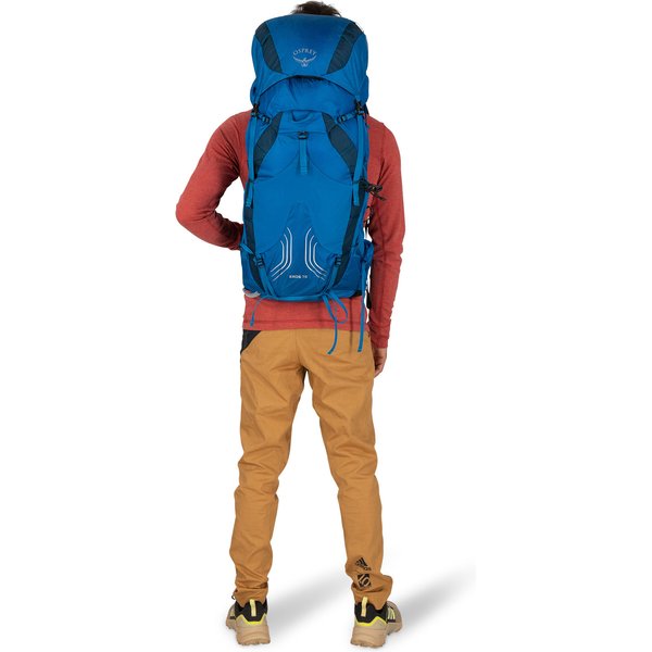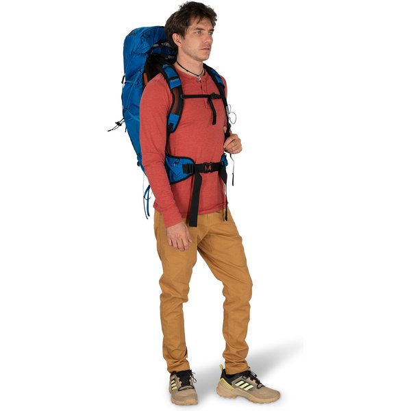 Jasny podział wnętrza pozwala na sprawne zapakowanie wszystkich niezbędnych elementów. W plecaku nie brak małych kieszonek na drobiazgi, które znajdują się w pasie biodrowym oraz po bokach. Na zewnątrz znajdują się pasy kompresyjne, pozwalające na dopasowanie gabarytów plecaka do jego objętości oraz liczne mocowania, takie jak choćby punkty mocujące do przyczepienia przeciążeń, pętle na toporek lodowcowy i system mocowania kijów trekkingowych Stow-on-the-Go.