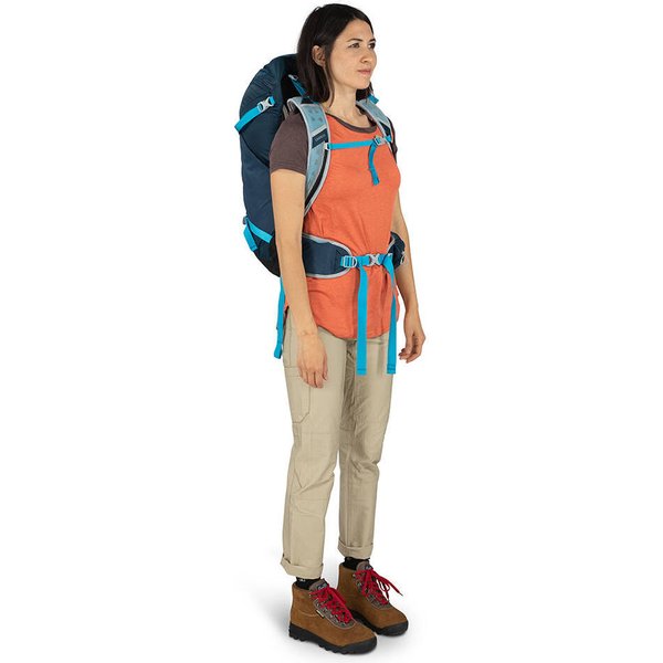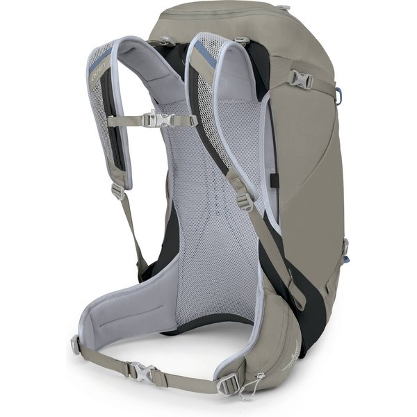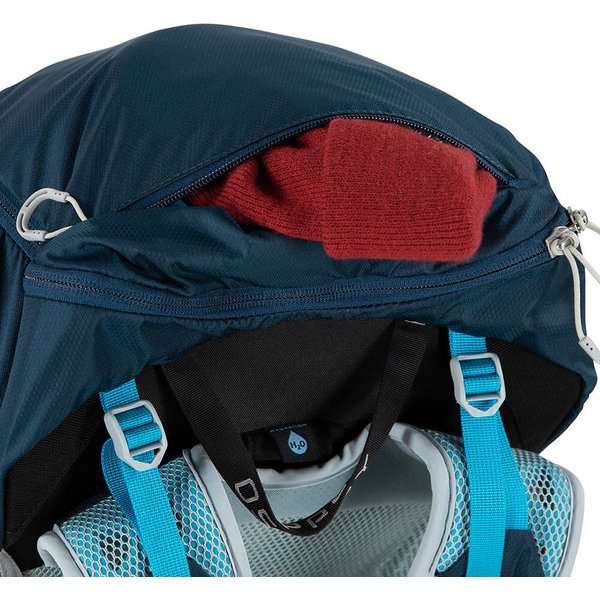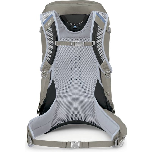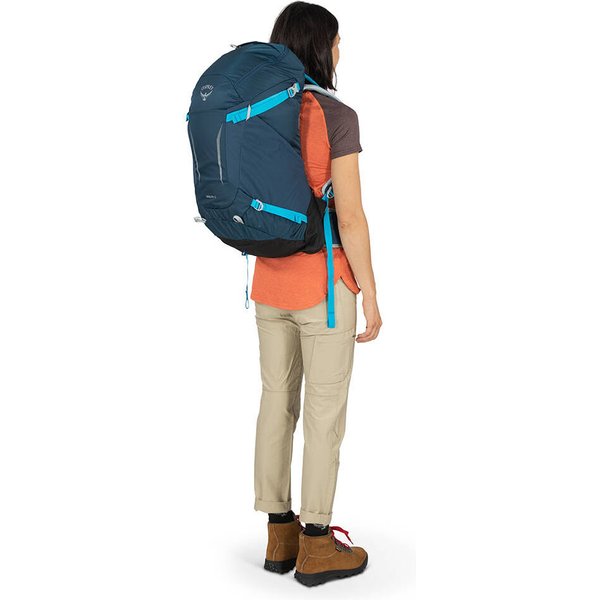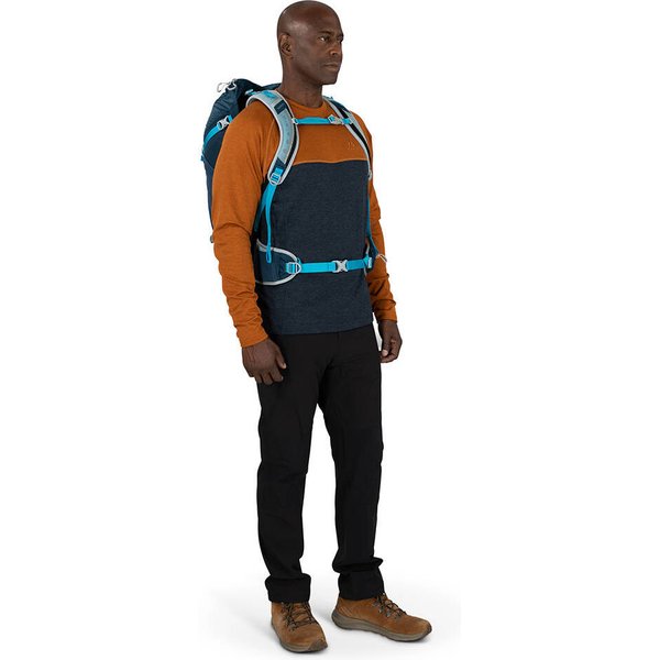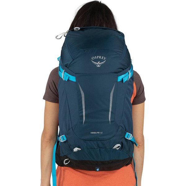 Materiał posiada powłokę DWR, która powoduje skraplanie wody, dzięki czemu tkanina nie wchłania wilgoci. Główna komora zamykana na zamek błyskawiczny w kształcie wiadra oraz przednia kieszeń z elastycznymi panelami ułatwiają zarządzanie przeciążeniami. Do plecaka dołączona jest osłona przeciwdeszczowa, która zapewni suchość podczas deszczu. Liczne kieszenie, w tym zewnętrzna kieszeń na zamek błyskawiczny z klipsem na klucze pozwolą na przechowanie i organizację przedmiotów. Plecak Hikelite 32L Logo Osprey ma także pas biodrowy z kieszenią zapinaną na zamek i jedną otwartą kieszenią z elastycznej siatki oraz regulowany pasek na mostek z gwizdkiem ratunkowym. Logo marki na froncie podkreśli wysoką jakość.