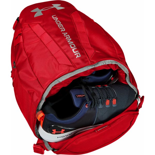 Hustle 5.0 wyposażony jest także w dolną komorę zapinaną na suwak, w której odseparować od reszty rzeczy możesz obuwie treningowe czy brudną i mokrą odzież. Panel dolny został specjalnie wzmocniony, a jego wysoka odporność na ścieranie podnosi trwałość plecaka. Szelki naramienne wykonane w technologii HeatGear® oferują optymalną cyrkulację powietrza. Wewnątrz plecaka Hustle 5.0 znajduje się miękko wyścielona przegroda na laptop o maksymalnej wielkości 15".