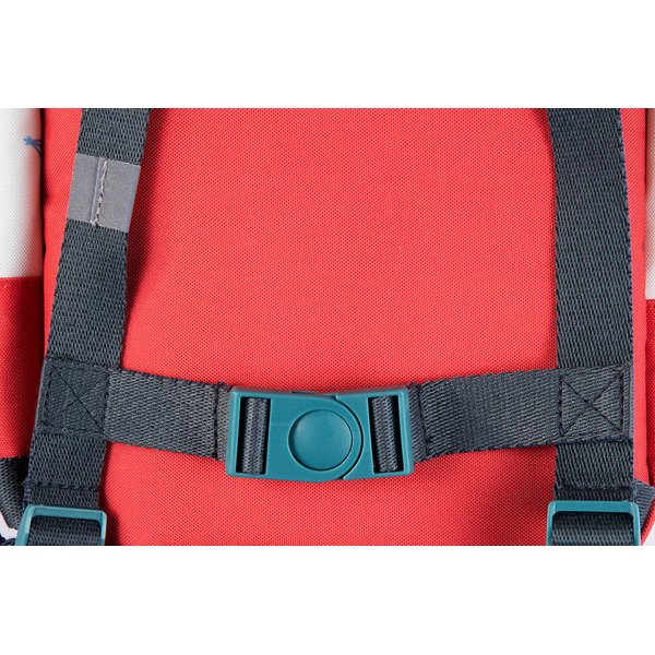 - elementy odblaskowe umieszczone z przodu plecaka na szwie oraz na szelkach zwiększają bezpieczeństwo dziecka i poprawiają jego widoczność na drodze po zmroku,