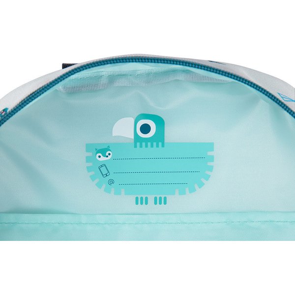 - wizytówka umieszczona wewnątrz, od strony pleców umożliwia podpisanie plecaka imieniem i nazwiskiem dziecka; można tez podać tam dane kontaktowe rodzica,