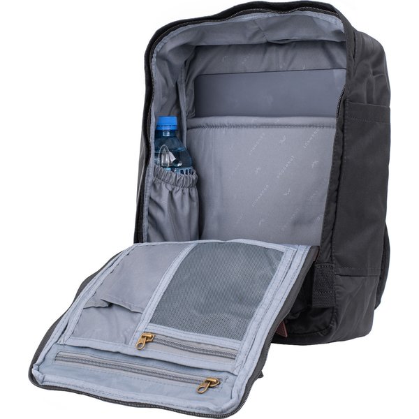 Te ultralekki plecak uszyty został z odpornej na wilgoć tkaniny Heavy Twill, która jest wysoce odporna na uszkodzenia mechaniczne i zabrudzenia. Niekwestionowaną zaletą modelu Macaroon jest fakt, że suwak komory głównej rozpina się niemal na całą szerokość plecaka, co pozwala na szybkie znalezienie rzeczy umieszczonych nawet na samym dnie plecaka. Wewnątrz komory głównej znajdziesz także przegrodę na tablet lub laptop 13" oraz mniejsze kieszonki na drobiazgi. Przedmioty, które chcesz mieć pod ręką możesz umieścić w frontowej kieszonce zapinanej za pomocą skórzanych pasków na zatrzask. Szeroki uchwyt plecaka z dodatkową, zapinaną na zatrzask skórzaną klamerką, pozwala nosić ten plecak również jak torbę.