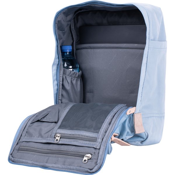 Te ultralekki plecak uszyty został z odpornej na wilgoć tkaniny Heavy Twill, która jest wysoce odporna na uszkodzenia mechaniczne i zabrudzenia. Niekwestionowaną zaletą modelu Macaroon jest fakt, że suwak komory głównej rozpina się niemal na całą szerokość plecaka, co pozwala na szybkie znalezienie rzeczy umieszczonych nawet na samym dnie plecaka. Wewnątrz komory głównej znajdziesz także przegrodę na tablet lub laptop 13" oraz mniejsze kieszonki na drobiazgi. Przedmioty, które chcesz mieć pod ręką możesz umieścić w frontowej kieszonce zapinanej za pomocą skórzanych pasków na zatrzask. Szeroki uchwyt plecaka z dodatkową, zapinaną na zatrzask skórzaną klamerką, pozwala nosić ten plecak również jak torbę.