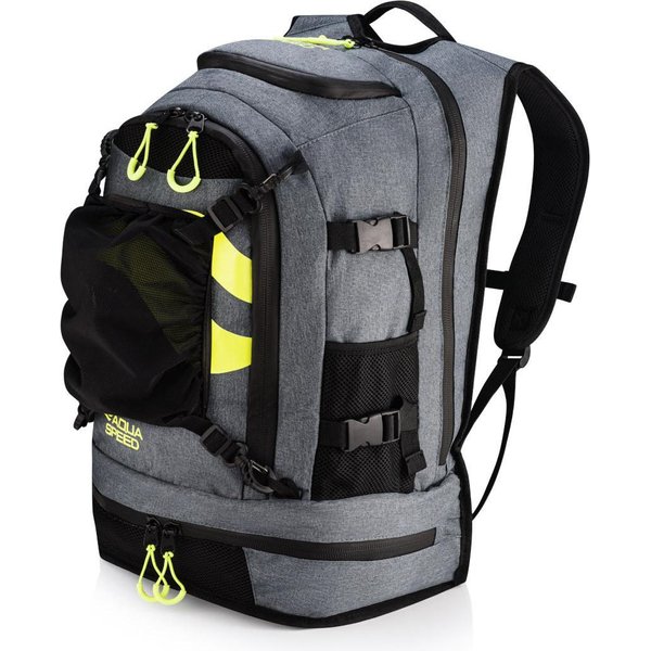 Plecak Maxpack 42L Aqua-Speed to idealny wybór dla miłośników sportów i podróży. Odporny na zmienne warunki atmosferyczne, zaprojektowany z dbałością o każdy szczegół zapewnia wysoki komfort użytkowania nawet przy pełnym obciążeniu. Wyściełany panel tylny oraz paski zapewniają doskonałe wsparcie dla pleców, a wzmocnione dno chroni przechowywaną zawartość przed mokrą nawierzchnią. Praktyczne kieszonki umożliwiają przechowywanie mokrego stroju czy butów, a pojemna komora główna z przegródką na laptopa zapewnia miejsce na duże przedmioty treningowe. Zabezpieczone kieszenie pozwalają na bezpieczne przechowywanie okularów, butelki z wodą, portfela czy telefonu. To idealny wybór dla aktywnych ludzi, którzy cenią sobie nie tylko funkcjonalność, ale i wygodę.