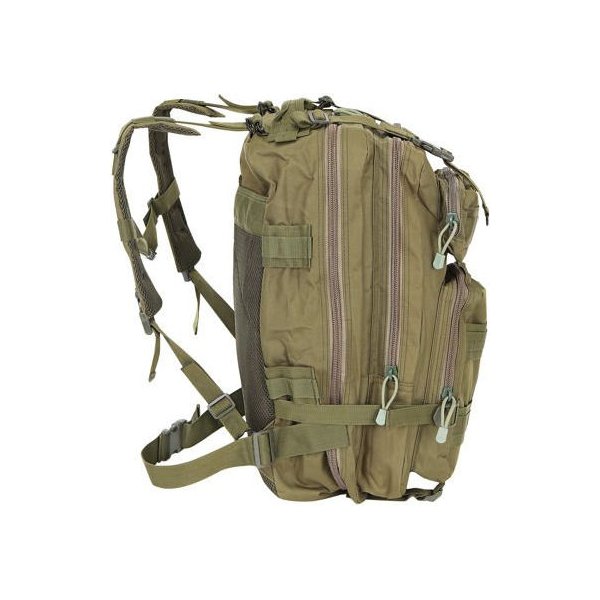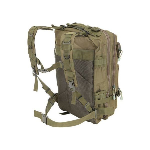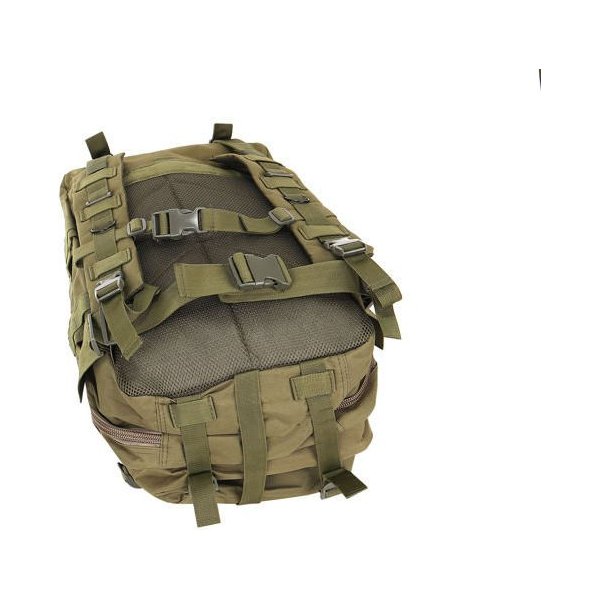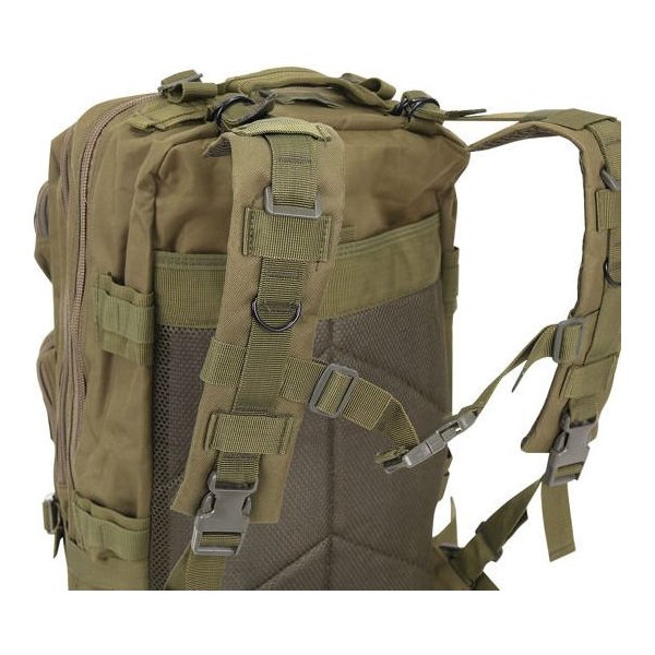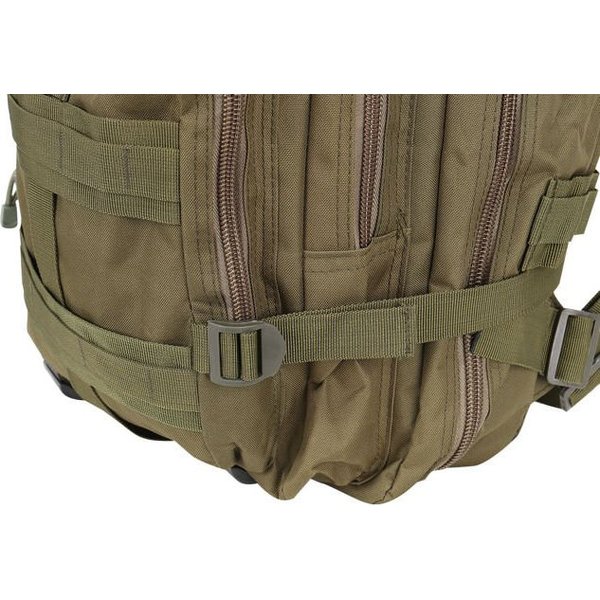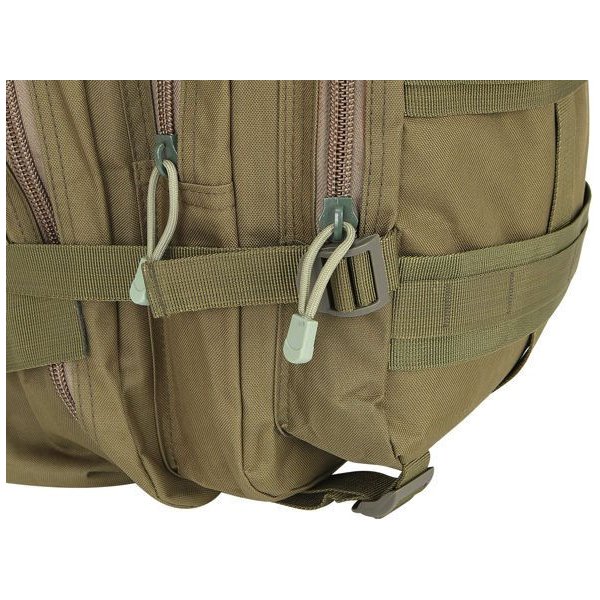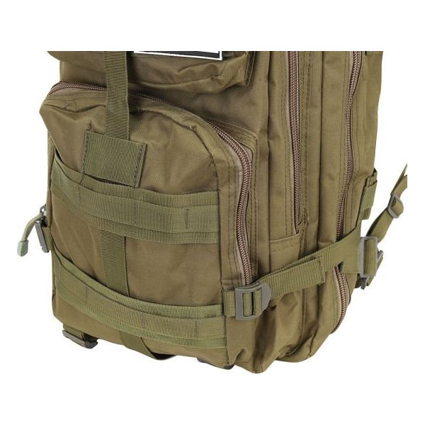 Na szelkach oraz na froncie plecaka zastosowano taśmy PALS, dzięki czemu możesz zamocować oporządzenie w systemie MOLLE. Możesz być pewien, że nawet podczas niesprzyjających warunków atmosferycznych, Twoje rzeczy pozostaną suche. Plecak został wykonany z wodoodpornego materiału, a wewnątrz został pokryty gumą, dlatego woda nie przedostanie się do środka.