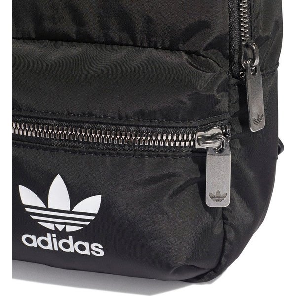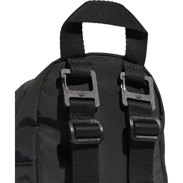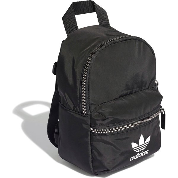 Gładki design został wykończony metalowymi uchwytami suwaka i wypukłym logo Trefoil, co stanowi sportowy akcent. Odpinane paski na ramię ułatwiają noszenie plecaka jako torby lub przenoszenie za górny uchwyt. Poliestrowa konstrukcja jest trwała i niełatwo się brudzi. Na przedmioty potrzebne pod ręką plecak posiada frontową kieszonkę zapinaną na suwak.