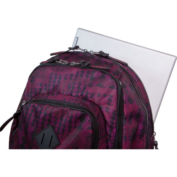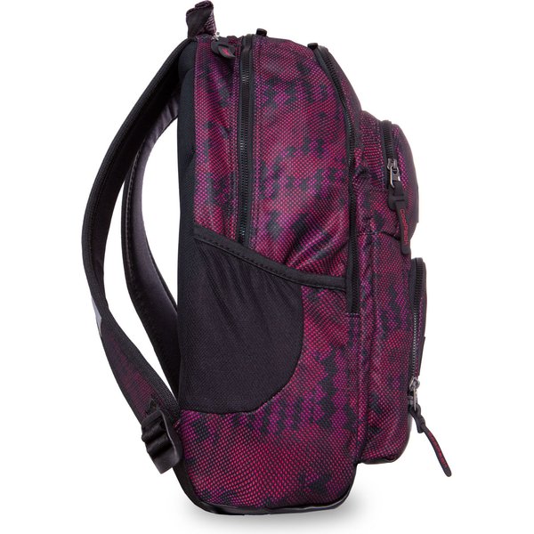 Duża pojemność plecaka podzielonego na dwie komory główne sprawia, że bez problemu zmieści się tam wiele rzeczy. Jest bardzo komfortowy w noszeniu dzięki usztywnionym plecom, wyściełanym szelkom z regulacją oraz wzmocnionemu spodowi. Boczna kieszonka na bidon lub butelkę z wodą może znaleźć także inne zastosowania. W środku plecaka znajduje się praktyczny organizer na drobiazgi, w tym przywieszka na klucze oraz specjalna przegroda na laptop, chroniąca go przed uszkodzeniami. Na zewnątrz umieszczono dwie zamykane na suwak kieszonki, w której zmieści się drugie śniadanie oraz inne drobiazgi. Plecak został uszyty z trwałego i odpornego na wodę materiału poliestrowego, dzięki czemu możesz cię nim cieszyć przez kilka sezonów.