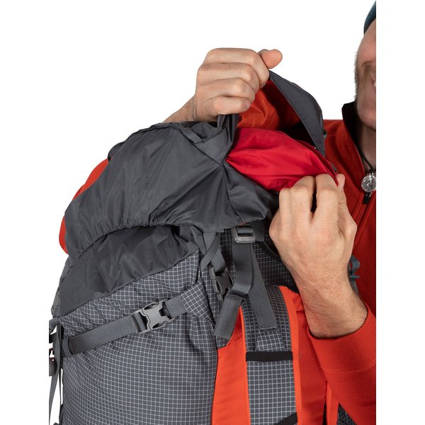 Wagę plecaka można zredukować, usuwając panel usztywniający plecy, pas biodrowy oraz górną pokrywę. Ekwipunek zabezpieczy klapa FlapJacket. Dużą zaletą plecaka jest system do troczenia liny wspinaczkowej oraz uchwyt na kask, dzięki czemu nie będziesz musiał marnować miejsca w plecaku i zawsze będziesz miał go pod ręką.