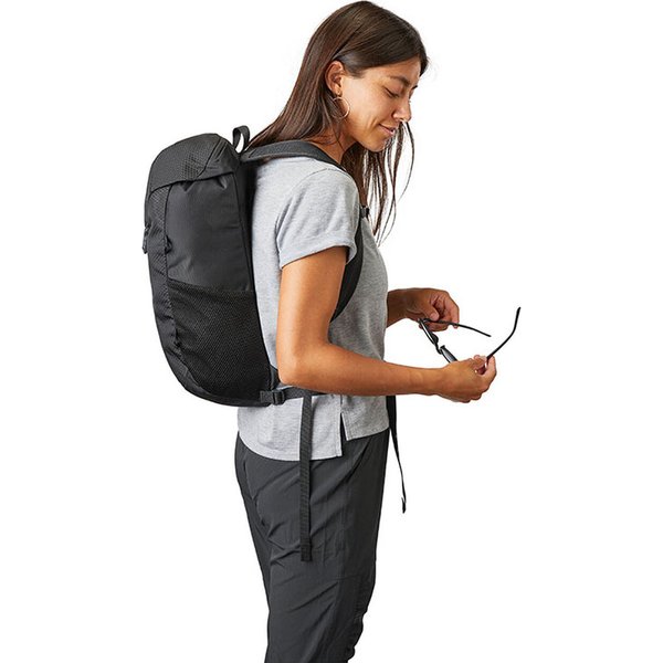 Plecak Nano od marki Gregory został wyposażony w wiele przydatnych elementów. Posiada m.in.: pas biodrowy z możliwością schowania, przegroda na bukłak, boczne kieszenie z siatki oraz pętle do mocowania sprzętu.
