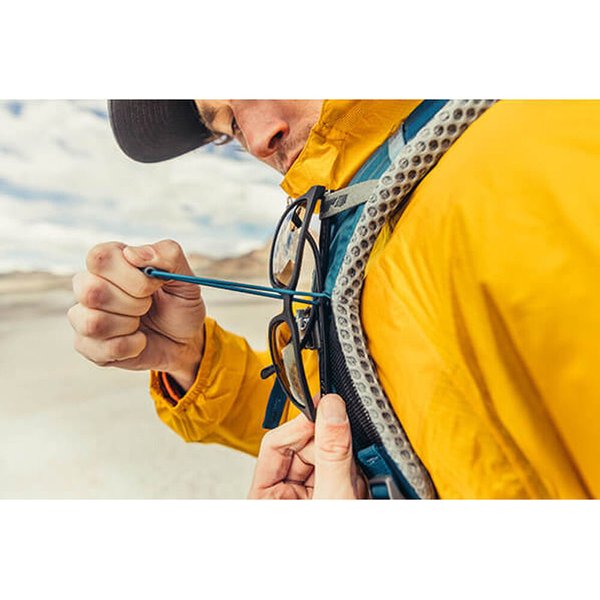 Plecak Paragon od marki Gregory został wyposażony w system QuickStow na pasach ramiennych. Pozwala on na bezpieczne schowanie okularów przeciwsłonecznych bez ryzyka zarysowania.