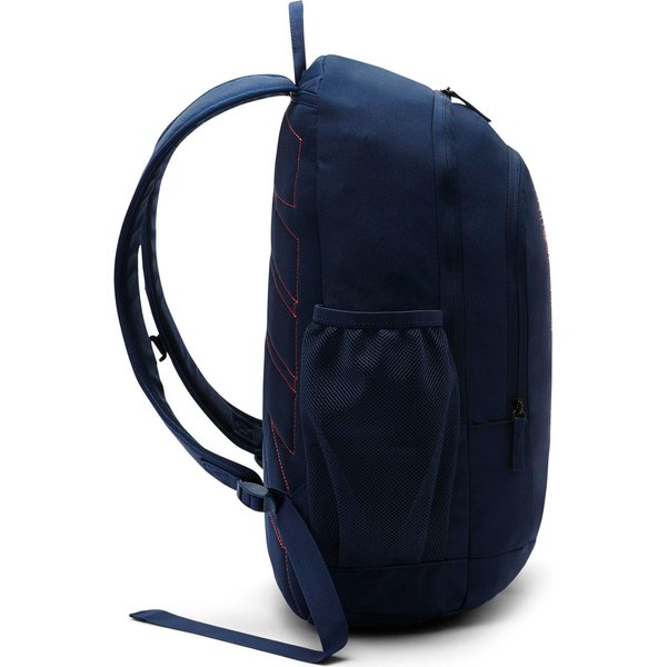 Przeznaczenie tego modelu jest uniwersalne, sprawdzi się on do codziennego noszenia szkolnych książek i przyborów oraz na treningi. Do dyspozycji masz pojemną komorę główną z wewnętrznymi kieszonkami na mniejsze przedmioty, by dostęp do nich był łatwy, a organizacja Twoich rzeczy- bez zarzutu. Zmienne buty na lekcje wychowania fizycznego czy korki potrzebne Ci na sparingu umieścisz w wentylowanej przedniej komorze, dzięki czemu możesz je odseparować od pozostałej zawartości plecaka, zwiększając komfort użytkowania. Umieszczone po bokach praktyczne kieszonki z siatki to bezpieczny schowek dla butelki Twojej ulubionej wody lub napoju. Materiał wykonania plecaka Paris Saint-Germain marki Nike to chroniący zawartość przed warunkami pogodowymi, trwały poliester. Abyś mógł się cieszyć plecakiem sygnowanym logo Twojego ulubionego klubu jak najdłużej!