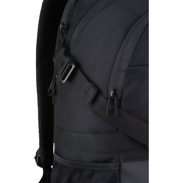 Dzięki klasycznemu designowi, plecak dopasuje się do każdej Twojej stylizacji, dodatkowo zapewni, że nigdy nie wyjdzie z mody. Natomiast tradycyjne trzy pasy podkreślą Twój sportowy charakter i zamiłowanie do sportu. Logo marki pozwoli podkreślić wysoką jakość produktu i sprawi, że poczujesz pełnię satysfakcji z jego posiadania. Komory zapinane są na zamki błyskawiczne, które są bardzo wytrzymałe, a wiele kieszeni zapewni wystarczająco dużo miejsca, by przechować tam najpotrzebniejsze dla Ciebie drobiazgi. Plecak został wyprodukowany z solidnych i trwałych materiałów, więc możesz mieć pewność, że posłuży Ci przez wiele długich sezonów. Szelki z możliwością regulacji dopasują się do wszystkich Twoich preferencji, a dodatkowa przegroda na laptopa zagwarantuje bezpieczeństwo Twoim urządzeniom elektronicznym.