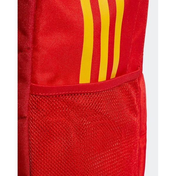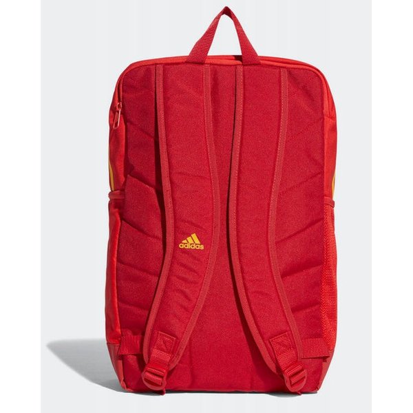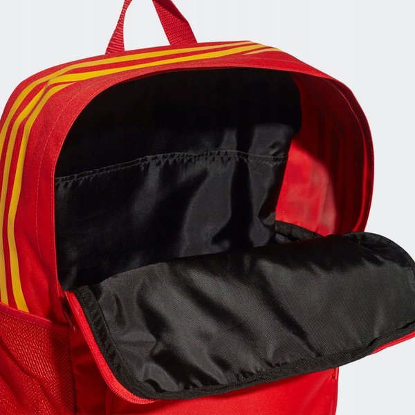 Plecak posiada pojemną komorę zamykaną na zamek, dodatkowe kieszenie zewnętrzne oraz wewnętrzne. Regulowane szelki zapewniają odpowiednie dopasowanie do użytkownika. Plecak posiada uchwyt umożliwiający wygodne przenoszenie plecaka w dłoni. Plecak posiada logo marki oraz ma nadrukowane 3 paski. Inspirowany jest Reprezentacją Hiszpanii i właśnie do niej nawiązuje kolorystycznie. Na modelu tym umieszczono również herb Reprezentacji Hiszpanii. Jest to idealny plecak na każdą okazję, który pozwoli wyrazić sympatię dla drużyny.