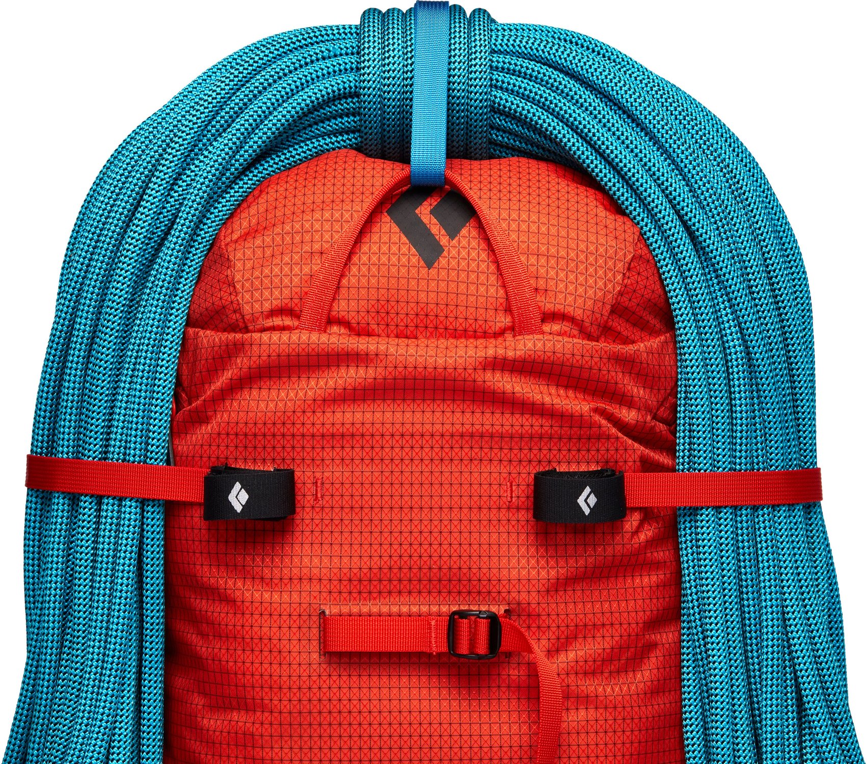 Plecak wyposażony został w wyściełane pasy naramienne z pianki o podwójnej gęstości i tylny panel, który odprowadza wilgoć i maksymalnie odciąża kręgosłup, co znacznie podnosi komfort noszenia podczas wspinaczek i wędrówek górskich, a także w żaden sposób nie ogranicza ruchów. Model zawiera również specjalne mocowanie PickPockets do bezpiecznego i stabilnego przytroczenia czekanów, dzięki czemu będziesz mieć swój sprzęt zawsze pod ręką. Funkcjonalność plecaka podnoszą także specjalne paski do zamocowania raków, pętle do kijków trekkingowych czy taśma do przytroczenia liny wspinaczkowej. Główna klapa została zaprojektowana tak, byś bez problemu mógł dostać się do komory głównej w rękawicach. Natomiast pasek z klamerką nie tylko ułatwi Ci szybki dostęp do zawartości, ale również zadba o bezpieczeństwo Twoich rzeczy.