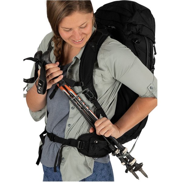 Plecak wykonany został z wytrzymałego materiału pochodzącego z recyklingu. Możliwość regulowania długości tułowia i konstrukcja dopasowana do kobiecej sylwetki sprawią, że model ten będzie bardzo komfortowy i wygodny w noszeniu. Tylny panel AirSpace zapewni odpowiednie dopasowanie, a także wentylację, co pozwoli na dłuższe poczucie świeżości i przyjemne ochłodzenie podczas wędrówki. Stabilność plecaka, nawet podczas ekstremalnych szlaków, zapewni pas piersiowy oraz pas biodrowy. Na pasie piersiowym znajduje się gwizdek alarmowy, który umożliwi szybkie wezwanie pomocy.
