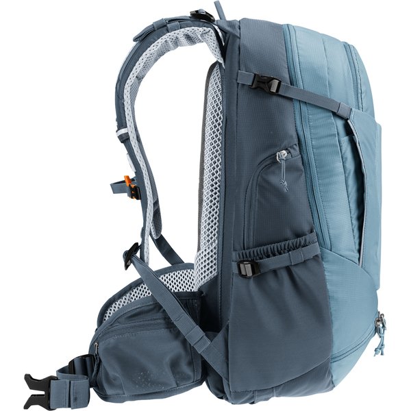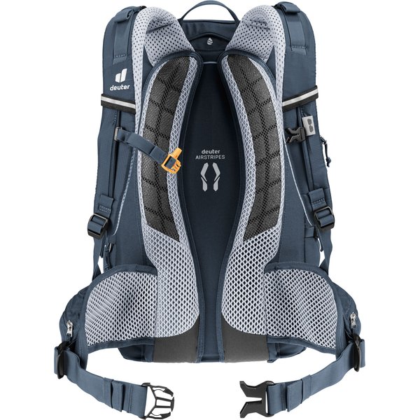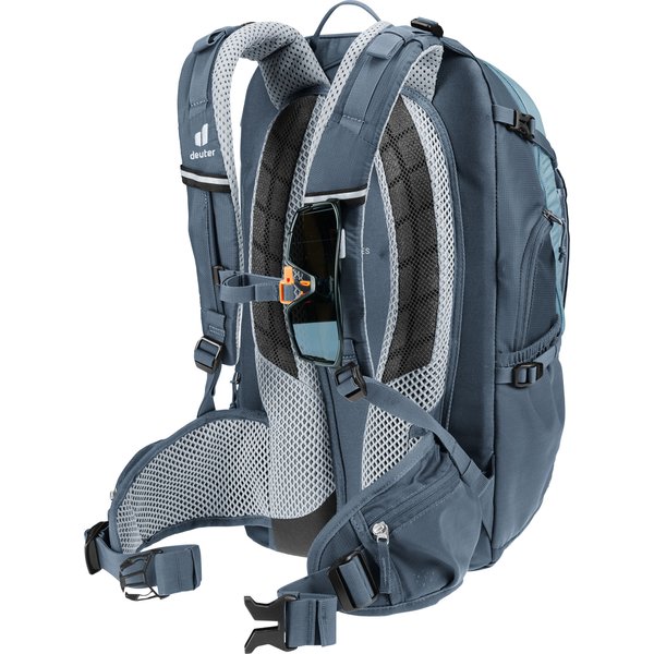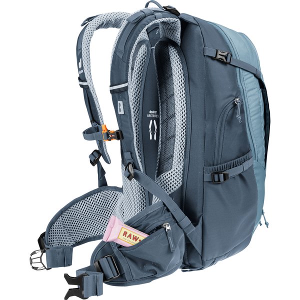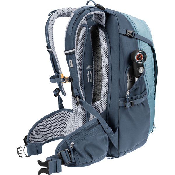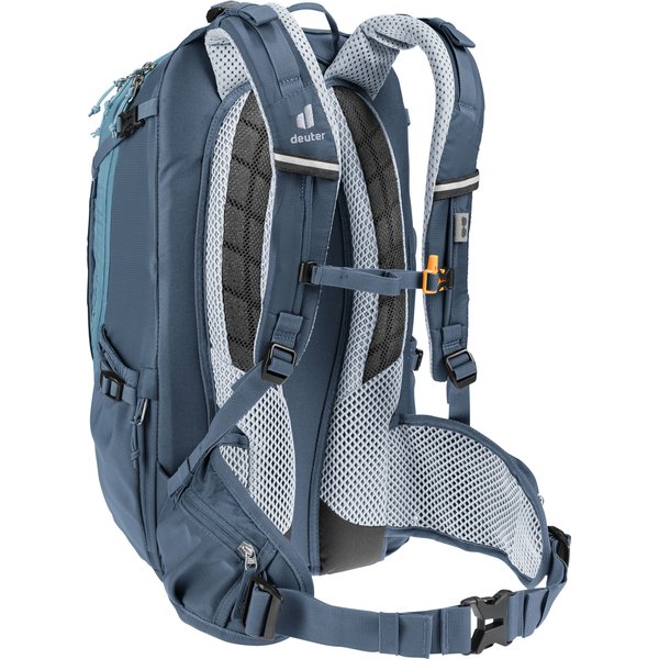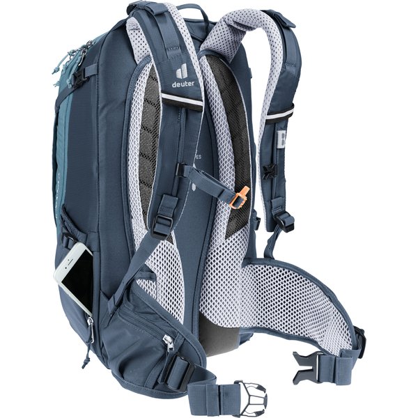 Dzięki przemyślanemu układowi oraz licznych praktycznych rozwiązaniom, zapewnia wygodę i funkcjonalność podczas długich tras. Jedną z głównych zalet plecaka jest system pleców Deuter Airstripes, który umożliwia swobodny przepływ powietrza, zapewniając doskonałą wentylację. Dzięki temu plecak zapewnia stabilne dopasowanie do pleców, co jest szczególnie ważne podczas trudnych odcinków szlaku. Plecak został zaprojektowany z myślą o różnych aktywnościach, dlatego sprawdzi się zarówno podczas dojazdów do pracy, jak i podczas intensywnego kolarstwa górskiego czy wycieczek rowerowych. Ważnym elementem plecaka są elastyczne szyny aluminiowe oraz ergonomicznie wyściełane szelki, które zapewniają wygodę noszenia nawet przy ciężkim obciążeniu. Dodatkowo, regulowany pas piersiowy oraz pas biodrowy stabilizują ładunek, zapewniając komfort podczas jazdy.