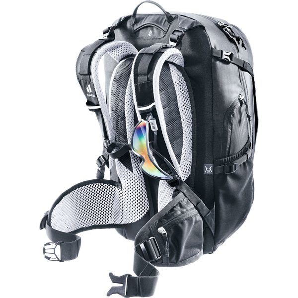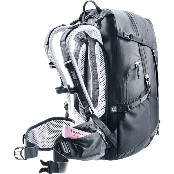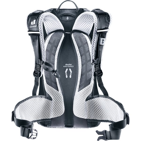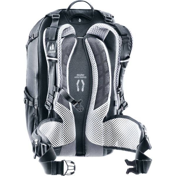 System pleców Deuter Airstripes zapewnia doskonałą wentylację, co sprawia, że noszenie plecaka jest komfortowe nawet podczas intensywnych wysiłków. Elastyczne szyny aluminiowe, ergonomicznie wyściełane szelki oraz regulowany pas piersiowy sprawiają, że plecak idealnie dopasowuje się do sylwetki i zapobiega chybotaniu ładunku podczas jazdy rowerem.
