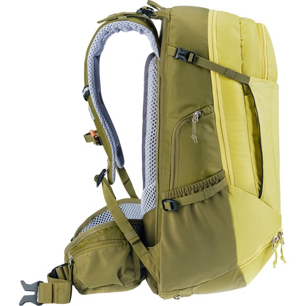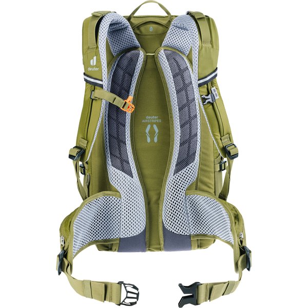 Dzięki pojemności 30 litrów i wygodnemu układowi z przegródkami na narzędzia oraz pompkę, ten plecak zapewnia łatwą obsługę i sprytną organizację. System pleców Deuter Airstripes gwarantuje doskonałą wentylację, a elastyczne aluminiowe szyny i ergonomicznie wyściełane szelki zapewniają solidne dopasowanie i komfort noszenia podczas pokonywania trudnych odcinków szlaku. Plecak ten jest idealny dla osób dojeżdżających do pracy, pasjonatów kolarstwa górskiego, rowerzystów szosowych, miłośników wycieczek i podróżników. Posiada wiele praktycznych funkcji, takich jak elastyczne pasy startowe, regulowany pas piersiowy, gwizdek sygnałowy, system przechowywania okularów, płetwy biodrowe wentylowane, kompatybilność z systemem hydratacyjnym oraz wiele innych.