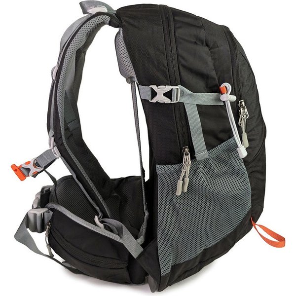 Plecak podczas projektowania został wyposażony także w nowoczesny system H2O, który pozwoli Ci ugasić pragnienie, gdy tylko będziesz czuł taką potrzebę. Kieszenie siateczkowe po bokach sprawią, że schowasz bezpiecznie wszystkie najpotrzebniejsze drobiazgi i wyciągniesz je szybko i bezproblemowo. Dodatkowo gwizdek ratunkowy pozwoli Ci poczuć się swobodnie w każdej sytuacji.