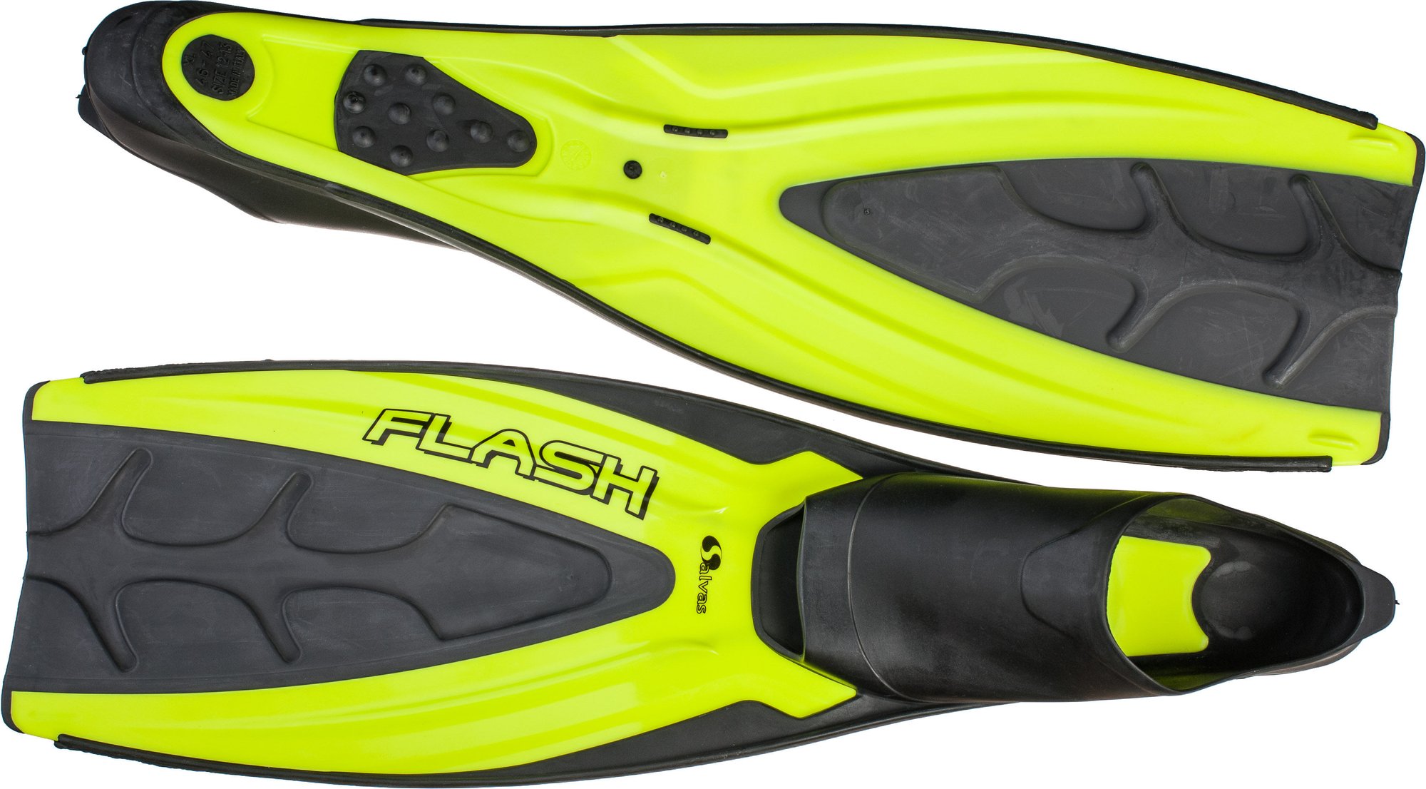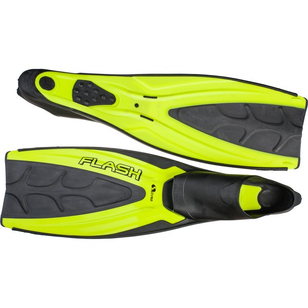 Płetwy FLASH przeznaczone są do rekreacyjnego pływania i nurkowania oraz dla profesjonalistów. Wykonane zostały z bardzo wytrzymałych tworzyw sztucznych - gumy i polimerów. Konstrukcja płetw z pełną stopą idealnie nadaje się dla kobiet i mężczyzn. Podłużne, gumowane wzmocnienia po bokach płetw zwiększają ich wydajność chroniąc równocześnie przed uszkodzeniami.