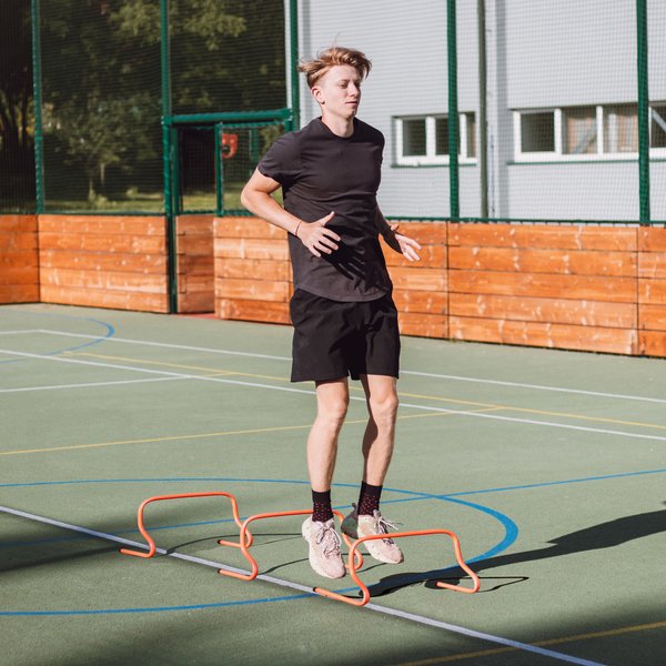 - Wszechstronność zastosowania: Odpowiednia wysokość pozwala realizować różne formy treningu – od dynamicznych przeskoków po ćwiczenia poprawiające równowagę i kontrolę ciała. Idealnie sprawdza się w treningach koordynacyjnych lekkoatletów, szybkościowych jednostkach piłkarzy oraz w treningu funkcjonalnym.