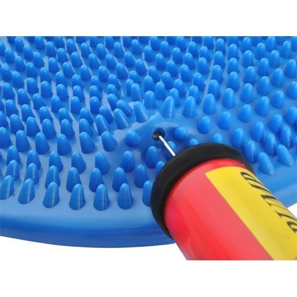 Ten wyjątkowy dysk otrzymasz w zestawie z pompką (wysyłaną losowo), którą możesz na bieżąco regulować twardość poduszki. Specjalne wypustki drażnią receptory czuciowe na podeszwach stóp, poprawiając w efekcie ukrwienie stóp oraz odprężają mięśnie. Tego typu poduszka jest często wykorzystywana przez rehabilitantów, instruktorów fitness do treningu balansu, rehabilitacji po urazach, siedzenia dynamicznego, koordynacji i masażu stóp.