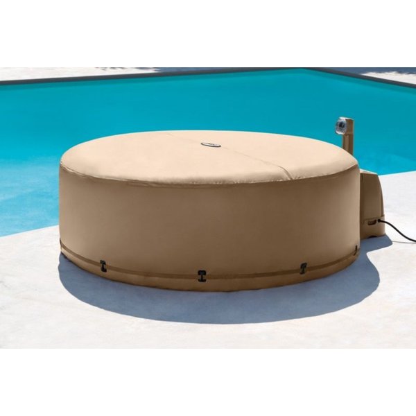 Mata termiczna pełni także funkcję ochronną, a jej odpowiedni kształt sprawia, że pokrywa doskonale pasuje do okrągłych basenów Intex. Odporność na wysoką temperaturę zapewnia izolację termiczną znacznie lepszą niż zastosowanie zwykłych plandek i minimalizuje utratę ciepła. Pokrywę można łatwo zainstalować, a klamry i paski utrzymają ją na swoim miejscu.