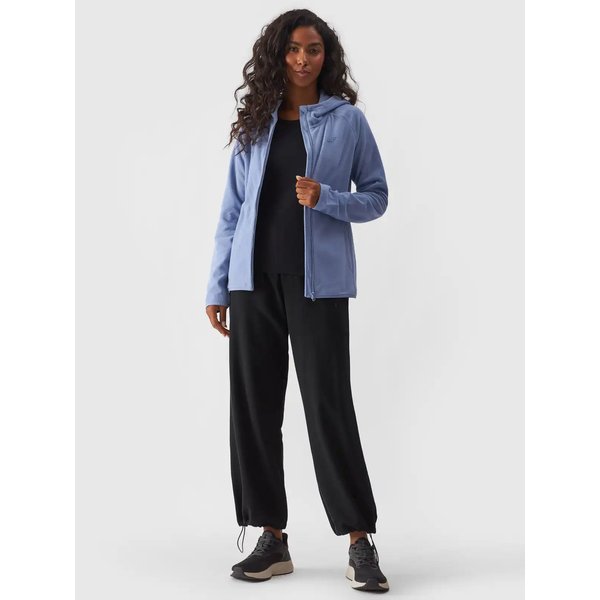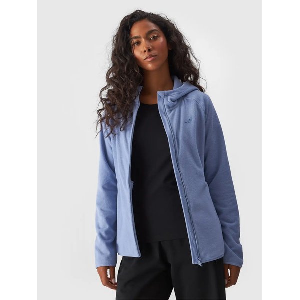 Polar damski 4F to idealny wybór na chłodniejsze dni, zapewniający doskonały komfort cieplny oraz wygodę noszenia. Elegancki, prosty krój i zintegrowany kaptur sprawiają, że bluza świetnie sprawdza się zarówno na co dzień, jak i podczas aktywności na świeżym powietrzu. Polarowy materiał jest miękki i przyjemny w dotyku, a długie raglanowe rękawy zapewniają swobodę ruchów. Dwie praktyczne boczne kieszenie oraz zamek błyskawiczny na całej długości zwiększają funkcjonalność. Dzięki ochronie podbródka i dyskretnemu logo na piersi, ten polar łączy w sobie styl i wygodę.