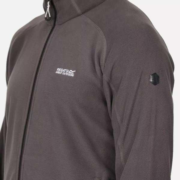 Polar męski Hadfield Regatta sprawdzi się zarówno jako ciepłe okrycie wierzchnie, ale także jako jedna z warstw odzieży. Polar wykonany został z wytrzymałego mikropolaru poliestrowego. Jest wygodny, a elastyczne obszycie mankietów pozwala na lepsze dopasowanie oraz zmniejszy ryzyko przedostania się wiatru. W zależności od temperatury możesz regulować polar zamkiem na całej długości, który również ułatwi zdejmowanie i zakładanie. Stójka pozwoli lepiej ochronić się przed zimnem. Kieszenie boczne pozwolą przechować najpotrzebniejsze drobiazgi, takie jak klucze lub telefon, a także ogrzać dłonie. Wygodny i stylowy polar sprawdzi się na spacery, turystyczne wędrówki, a także podczas wykonywania codziennych obowiązków.