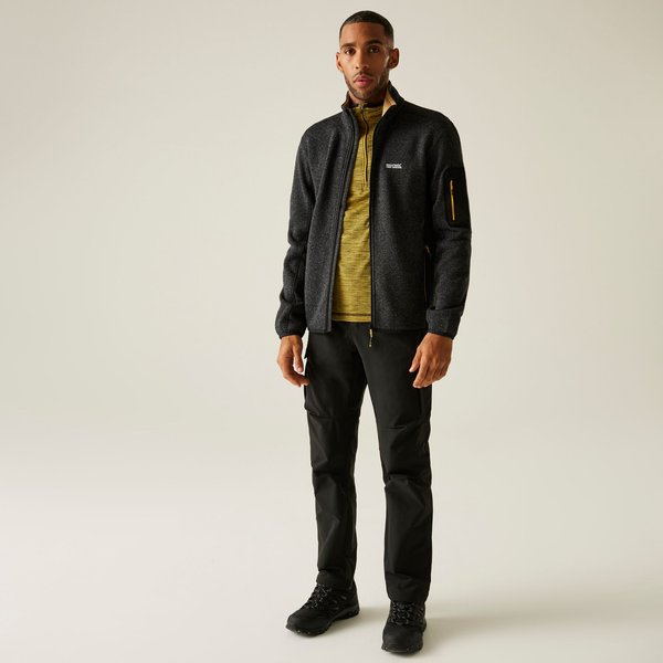 Męski polar Newhill Regatta to idealna propozycja dla miłośników komfortu i stylu podczas każdej przygody. Wykonany z wysokiej jakości melanżowej tkaniny o wyglądzie dzianiny, zapewnia doskonałe ciepło i wygodę dzięki szczotkowanemu spodowi. Elastyczne obszycia gwarantują znakomite dopasowanie do sylwetki, co zwiększa komfort noszenia. Polar wyposażony jest w praktyczne, zamykane na zamek kieszenie, które pozwalają na bezpieczne przechowywanie drobiazgów. Materiał, częściowo pochodzący z recyklingu, oferuje trwałość i ekologiczną odpowiedzialność. Prosty krój ze stójką podkreśla nowoczesny wygląd, a logo na piersi dodaje charakteru i stylu.