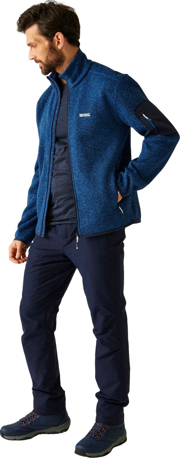 Męski polar Newhill Regatta to idealna propozycja dla miłośników komfortu i stylu podczas każdej przygody. Wykonany z wysokiej jakości melanżowej tkaniny o wyglądzie dzianiny, zapewnia doskonałe ciepło i wygodę dzięki szczotkowanemu spodowi. Elastyczne obszycia gwarantują znakomite dopasowanie do sylwetki, co zwiększa komfort noszenia. Polar wyposażony jest w praktyczne, zamykane na zamek kieszenie, które pozwalają na bezpieczne przechowywanie drobiazgów. Materiał, częściowo pochodzący z recyklingu, oferuje trwałość i ekologiczną odpowiedzialność. Prosty krój ze stójką podkreśla nowoczesny wygląd, a logo na piersi dodaje charakteru i stylu.