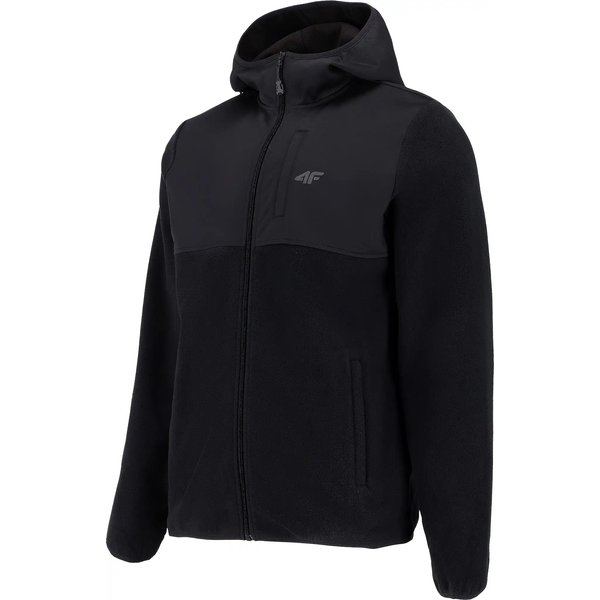 Polar męski od 4F to doskonały wybór dla tych, którzy cenią sobie komfort cieplny i wygodę noszenia. Wykonana z polarowego materiału, zapewnia przyjemne ciepło w chłodniejsze dni. Zintegrowany kaptur i zamek błyskawiczny na całej długości pozwalają na łatwe dopasowanie do warunków pogodowych. Dwie boczne kieszenie i jedna na piersi, wszystkie zapinane na zamek, oferują praktyczne miejsce na przechowywanie drobiazgów. Prosty krój i brak widocznych szwów oraz mankietów nadają elegancki wygląd. Logo marki świadczy o wysokiej jakości i dbałości o detale.