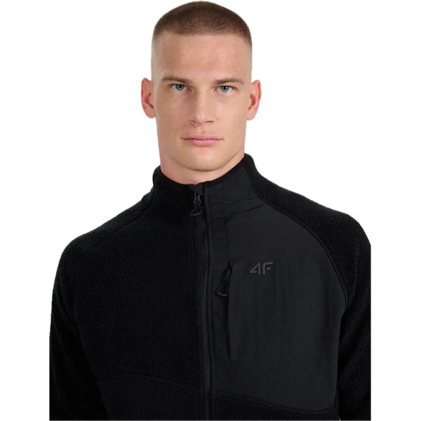 Polar męski marki 4F to doskonały wybór dla tych, którzy cenią komfort i styl w chłodniejsze dni. Wykonany z wysokogatunkowego materiału sherpa, zapewnia wyjątkowe ciepło i miękkość. Dzięki gramaturze 320 gsm, idealnie sprawdzi się podczas różnych aktywności na świeżym powietrzu. Wysoki kołnierz i zamek błyskawiczny na całej długości gwarantują ochronę przed wiatrem. Funkcjonalność produktu podkreślają praktyczne kieszenie na zamek, które pomieszczą niezbędne drobiazgi. Elastyczne mankiety i dół z gumką zapewniają doskonałe dopasowanie. Raglanowe rękawy i standardowy krój gwarantują swobodę ruchów, a subtelne logo na piersi dodaje modnego akcentu.