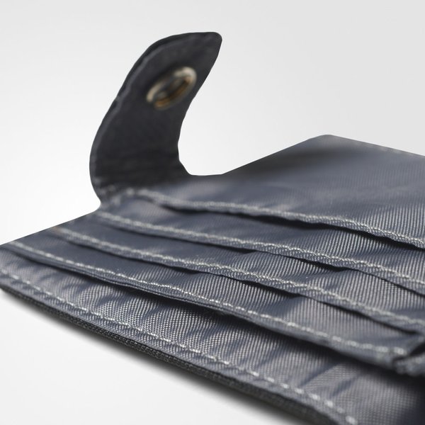 Zamykany na zatrzask portfel 3 Stripes Performance Wallet Adidas. Posiada liczne przegródki na karty oraz kieszeń na bilony, która jest zapinana na zamek. Portfel po złożeniu nie zajmuje wiele miejsca i bez problemu zmieści się do kieszeni spodni.